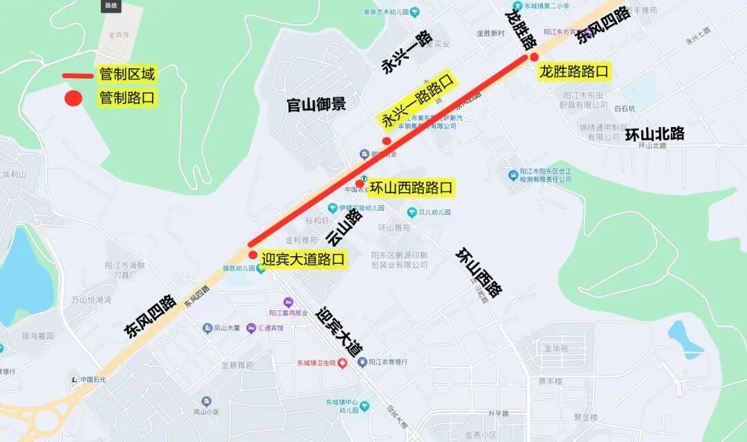 据阳江市公安局阳东分局交通警察大队消息,根据110千伏金东线43-44号塔更换导线紧急抢修需要,阳东区东风四路迎宾大道路口至龙胜路路口路段将进行全封闭施工,为保障抢修工作的顺利进行及道路交通安全、畅通,根据《中华人民共和国道路交通安全法》第三十九条、第四十条有关规定,决定对该路段实行临时交通管制。